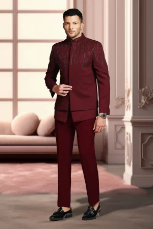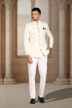 “Cream Mulberry Silk Gold Leather Applique Embroidered Sherwani Set” has been added to your cart.